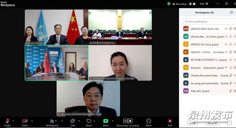 Virtual signing of the China Trust Fund (Quanzhou) Capacity Building Project for African World Heritage Sites.