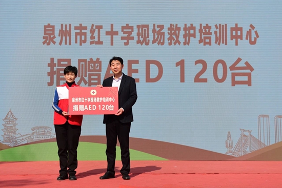 据介绍,近年来,泉州市红十字会和市卫健委以及各级各有关部门大力实施省委省政府“为民办实事”项目,积极在公共场所配置AED,开展群众性应急救护公益培训。近3年来,全市累计培训红十字救护员11.65万人次,实现公共场所配置AED 1189台,为保障人民群众生命安全,建设“健康泉州”发挥了积极贡献。