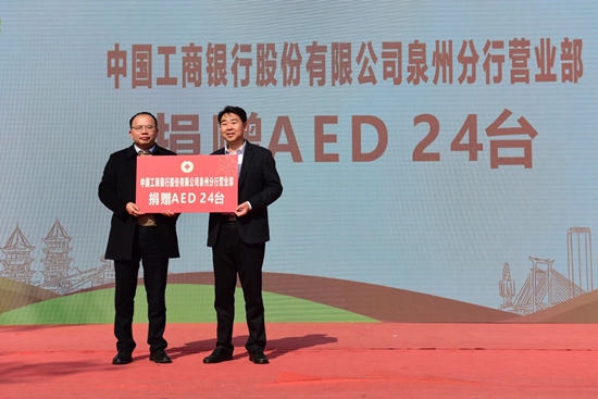令人欣喜的是,在“博爱泉州爱心救护”人道公益行动启动仪式现场,已有4家企事业爱心单位代表认捐184台AED。其中,泉州市红十字现场救护培训中心认捐120台AED、中国工商银行股份有限公司泉州分行营业部认捐24台AED、泉州德诚医院有限公司认捐20台AED、泉州市中豹产业园管理有限公司认捐20台AED。