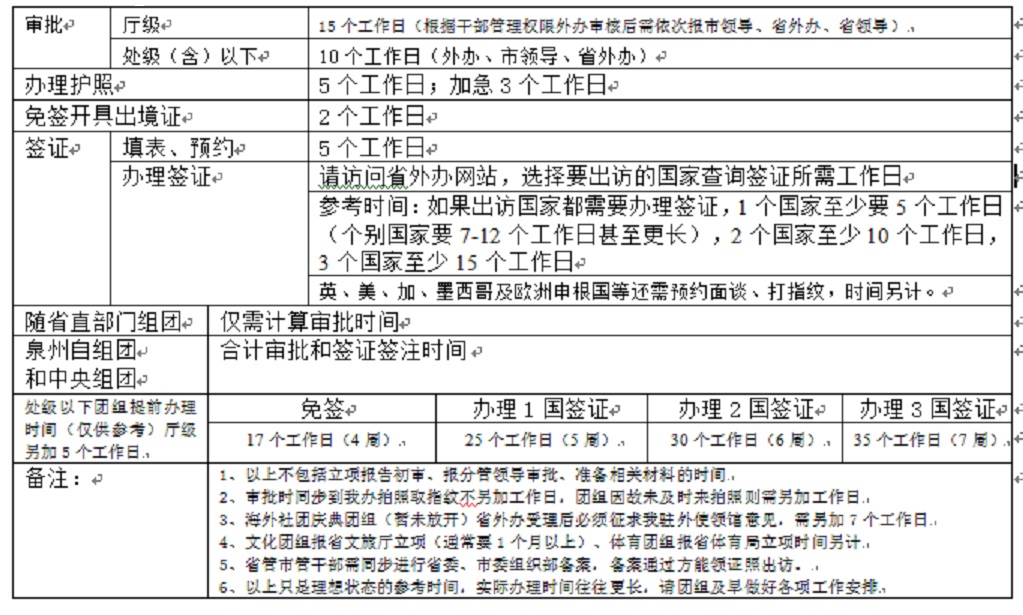 (五)准备所有材料,到外办办理因公出国(境)手续(所需工作日指材料完整,泉州外办接案之日起,环环相扣,没有任何延误的情况下,实际时间往往更长)