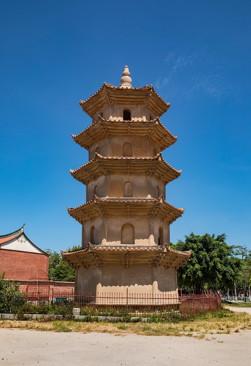 The construction of Anping Bridge drew on the methods applied in building Luoyang Bridge, but with some added innovations. A number of ancillary buildings were constructed on Anping Bridge and in the surrounding area. At the eastern end of the bridge is a hexagonal five-story brick Ruiguang Pagoda featuring the style of wood pavilion pagoda. Construction on the pagoda started in 1152, and its purpose was to guard the ancient bridge and provide divine protection for traveling merchants. The Bridge Tower Pavilion (Qiaotou Pavilion) at the eastern end of the bridge, Water Heart Pavilion (Shui Xin Pavilion) in the middle of the bridge, and the Tidal Shrine (Haichao Temple) at the western end of the bridge are all buildings relating to the local folk religion. In the middle section of the bridge, four small square stone pagodas were also built. In the surrounding area of Water Heart Pavilion, 16 stele inscriptions recording repairs made to the bridge in the dynastic eras have been preserved. Beside the pavilion's front columns, two statues of generals protecting the bridge stones still stand; these are works of Song Dynasty stone sculpture. On the western and eastern sides of the bridge, two bridge gateway house were built, the "High Vantage Building" (Wanggoa Pavilion) and the "Tide Listening Building" (Tingchao Pavilion). Two pavilions were constructed in the middle section of the bridge to provide people crossing the bridge with shelter from the rain and somewhere to rest.