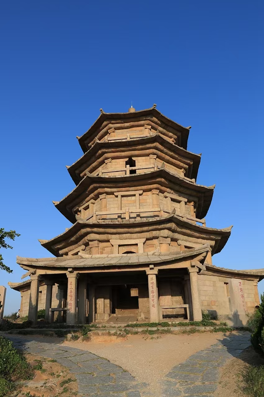 Wanshou Pagoda is a representative component reflecting the Transportation Network of Quanzhou as an emporium of world maritime trade. It was the landmark for merchant ships arriving at the port of Quanzhou; it also served as a source of spiritual support for the local population by safeguarding the bay and providing divine protection for traveling merchant. Wanshou Pagoda sits atop Baogai Hill, 20 kilometers southeast of Quanzhou city. It is a stone pagoda styled to imitate a wooden pavilion. Made of large granite slabs, Wanshou Pagoda is a five-storey octagonal structure, hollow inside and encompassed with external corridors on each floor. It has an overall height of about 22 meters and a site area of 325 square meters. It was built by monk Jieshu during the Shaoxing reign (1131-1162) of the Southern Song Dynasty when Quanzhou's maritime trade reached its peak. Baogai Hill is situated amongst the hills between Quanzhou Bay and Shenhu Bay. Rising 210 meters above sea level, it is the highest point in the Quanzhou Bay area. As such, Baogai Hill is a strategic location for controlling the bay. According to ancient feng shui geomantic theory, this area is considered as the "water exit" or outlet of Quanzhou. Building a pagoda in such a location could lock the outlet and ensure safety. Due to its commanding height, Wanshou Pagoda is also known as the Pass Locking Pagoda. Besides, it is nicknamed "the Sisters-in-Law Pagoda" for its association with the legend of a man's wife and his younger sister who turned to stone due to gazing endlessly out at sea longing for his safe return. Historical texts state that ships could be seen from Wanshou Pagoda and ships used the pagoda as a beacon to guide them home.