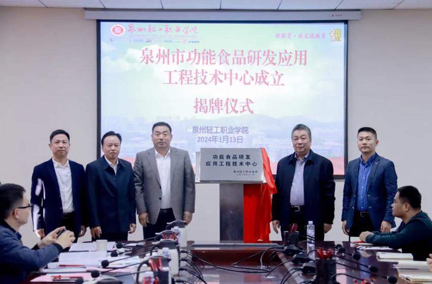 To implement the 2030 Healthy China Strategy, promote the transformation and upgrading of the regional food industry, align with the development needs of Quanzhou's snack food industry, and explore new models for applied research and industry-academia-research collaboration, the Quanzhou Industrial and Technology Development Forum and the Inaugural Ceremony of the Quanzhou Functional Food R&D and Application Engineering Technology Center took place on the afternoon of January 13, 2023. The event was held at Quanzhou Vocational College of Light Industry, specifically at the third-floor academic conference room of the Smart Library.
