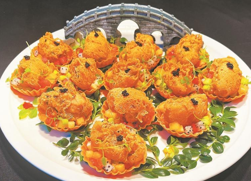 At the Chunshan Lingyan National Arts Pavilion in Quanzhou, the Qingyuan Tea Banquet takes diners on a historical and cultural journey. This banquet is divided into three themes: Tea Fragrance of the Maritime Silk Routes, Famous Teas of Fujian, and Quanzhou's Treasures. Each dish not only showcases meticulous craftsmanship but also embodies deep cultural significance. For instance, the Dragon Dumpling with Oysters pays homage to the Northern Song Dynasty's tribute tea tradition, while the Tea-Infused Nine-Section Pudding celebrates Quanzhou's maritime heritage and its global export of tea and porcelain. All dishes are served on elegant Dehua white porcelain, with stories of Quanzhou's tea and porcelain history shared with diners.